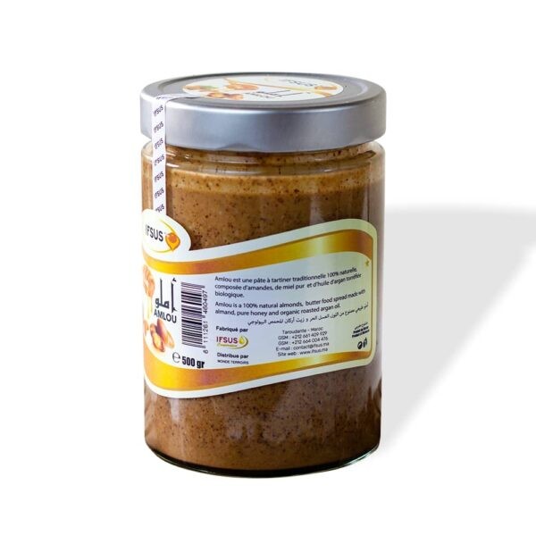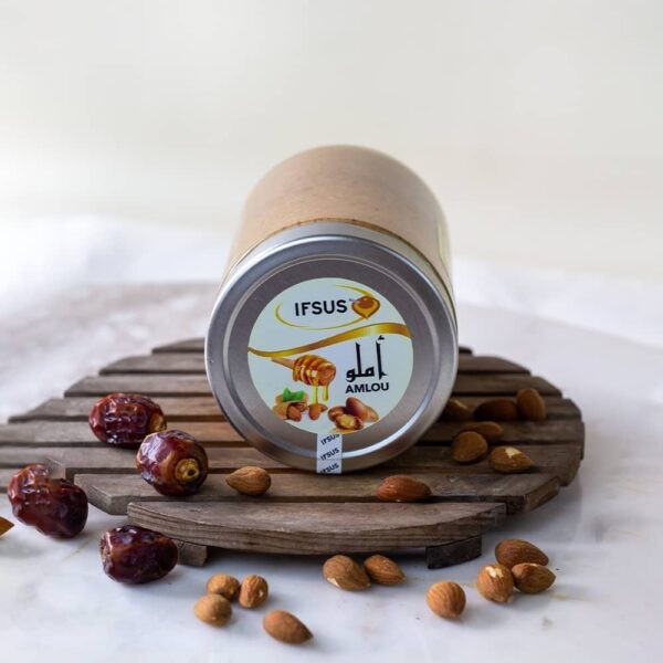 Découvrez l’authenticité et la richesse de la cuisine marocaine avec notre Amlou traditionnel, une pâte à tartiner raffinée et nutritive. Fabriqué artisanalement selon les recettes ancestrales, notre Amlou combine des amandes finement moulues, de l’huile d’argan vierge extra et du miel pur de fleurs sauvages, garantissant une qualité et une saveur incomparables. Riche en vitamines, minéraux et antioxydants, l’Amlou est bénéfique pour la santé, grâce aux propriétés nourrissantes de l’huile d’argan, aux protéines et fibres des amandes, et à l’énergie naturelle du miel. Savourez-le sur des tartines, crêpes, gaufres, ou utilisez-le comme dip pour des fruits frais et dans vos recettes de pâtisserie. Disponible en pots de 300g et 500g, notre Amlou s’adapte à toutes vos envies, chaque pot respecte des standards élevés de qualité et d’éthique. Laissez-vous transporter au cœur du Maroc avec chaque cuillère de notre Amlou et savourez un morceau du Maroc chez vous !