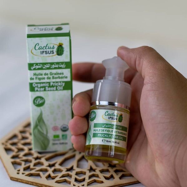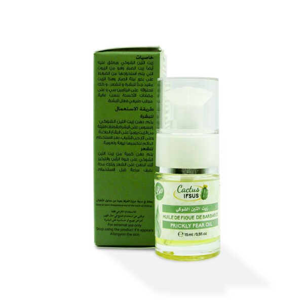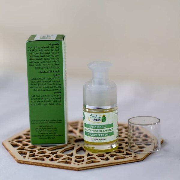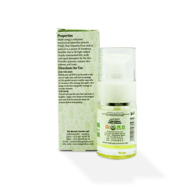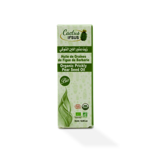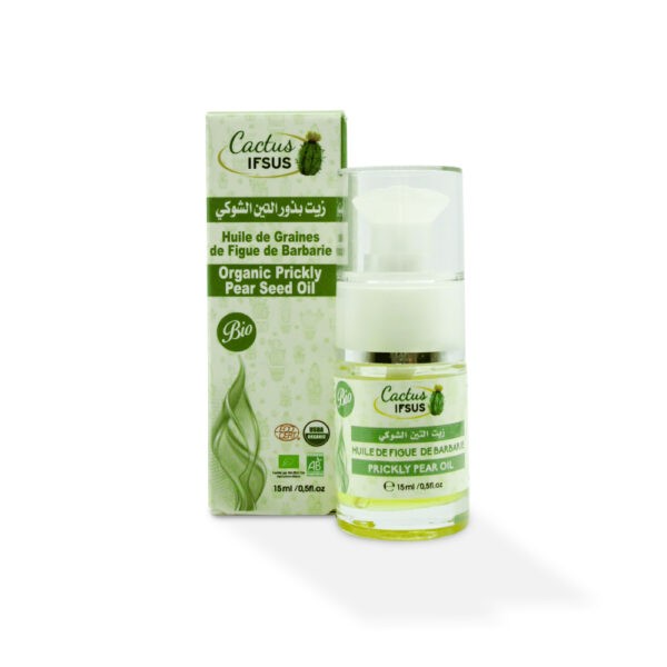 La figue de Barbarie de type Opuntia ficus-indica est considérée comme un fruit exotique à nombreuses graines très prisé par l’industrie cosmétique bio. L’huile végétale de figue de Barbarie, 100 % pure et organique, est probablement l’huile naturelle la plus précieuse au monde, extraite par pression à froid à partir des graines d’Opuntia ficus indica. Ces dernières ne contiennent que 5 % d’huile, ce qui explique sa rareté. Extrêmement riche en vitamine E, en oméga 6 et en stérols, elle en fait un allié apprécié des peaux matures grâce à ses vertus anti-âge pour le visage, le cou et les mains. Elle aide au traitement des rides, de l’acné et des taches faciales, stimule la croissance des ongles et des cheveux. Usage cosmétique : Massage circulaire du visage et du cou tous les soirs. Mettez une petite quantité d’huile sur les ongles pour stimuler la croissance ou sur les cheveux pour les nourrir et les hydrater. BIO INCI : Opuntia ficus-indica seed oil.